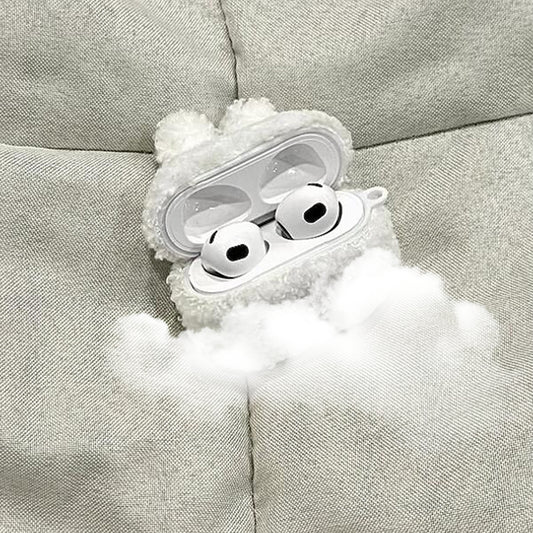 White Bunny Plush Hand Rope Airpods Case - Lovesickdoe