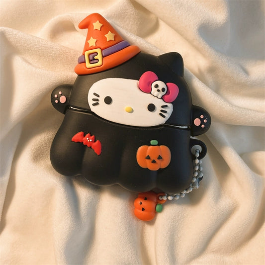 Black Kitty Halloween Silicone AirPods Earphone Case