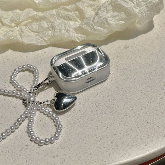 Plain Apple AirPods / Pro Earphone Case Skin with Heart Bead Charm