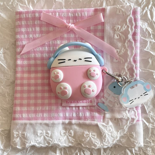 Set: Cartoon Cat AirPods Earphone Case Protection Cover + Charm