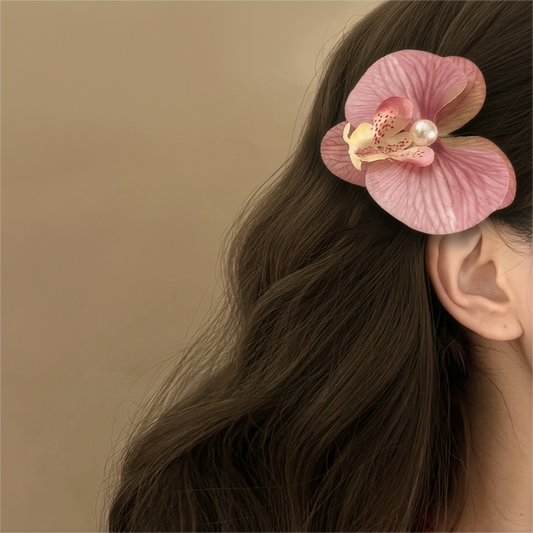 Butterfly Orchid Flower Pearl Hair Clip
