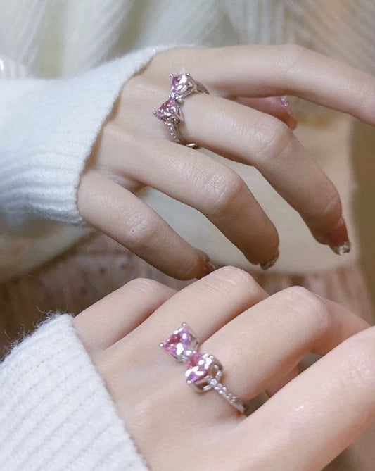 Sweet Colorful Crystal Heart Bowknot Ring