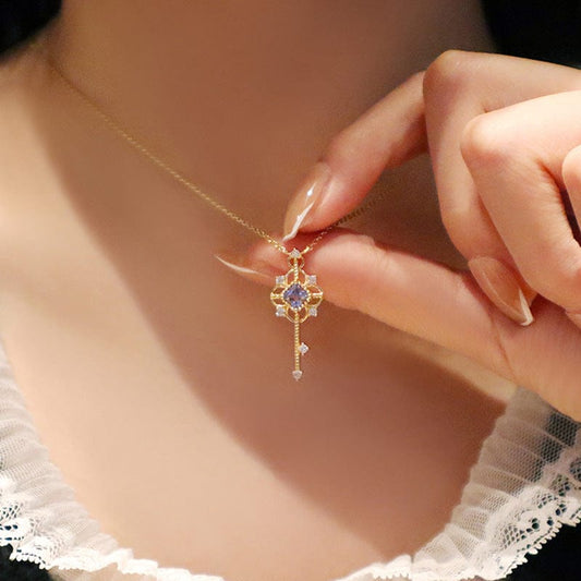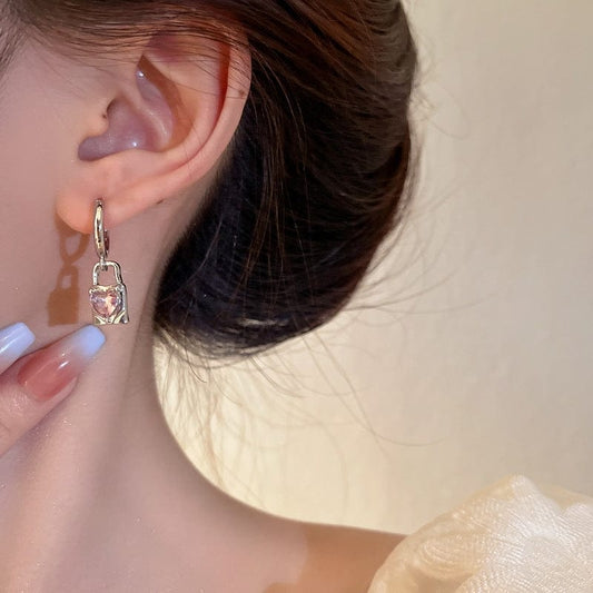 Pink Crystal Heart Dangling Key Lock Huggie Hoop Earrings