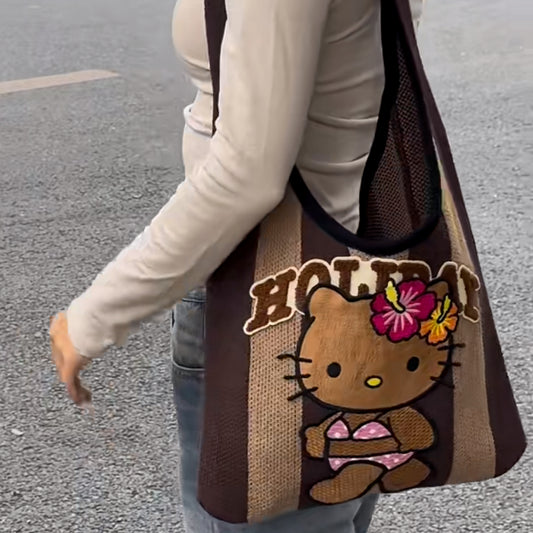 Purple Vacation Kitty Knitted Shoulder Bag KI534