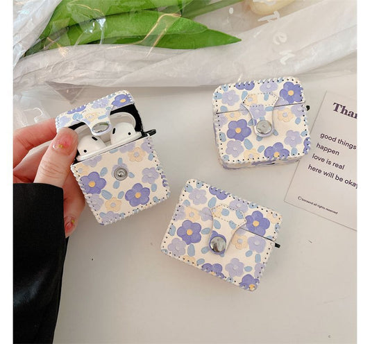 Flower Print Faux Leather AirPods Earphone Case Skin