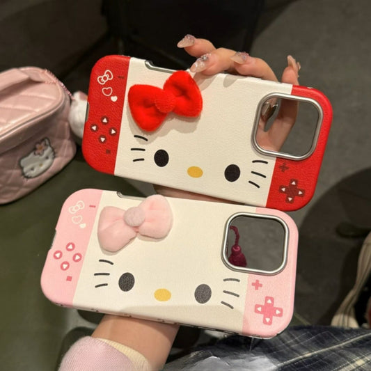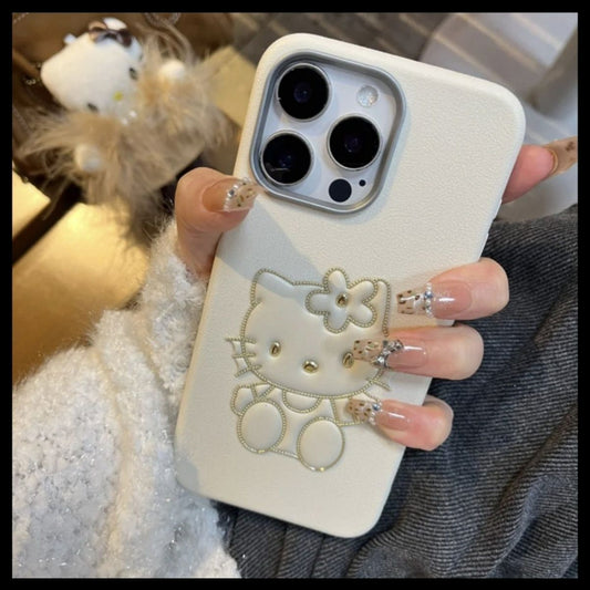 Kitty Embroidery Plush Mirror Flip iPhone Case