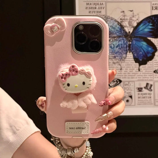 Cute Kitty Wing Ring Stand Leather iPhone Case