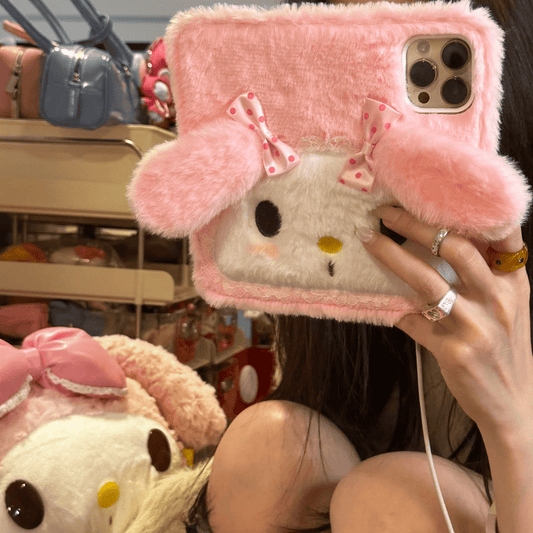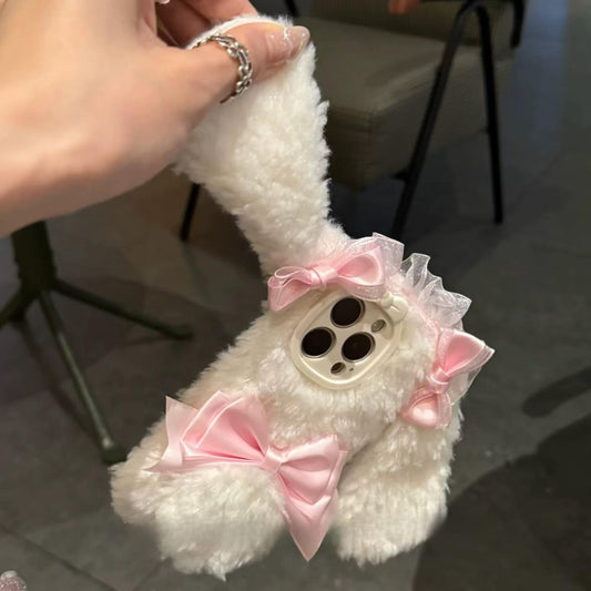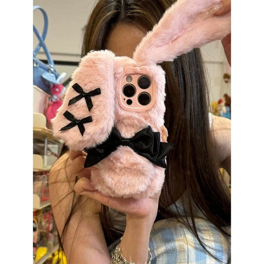 Y2K Bowknot Pink Bunny Plush iPhone Case