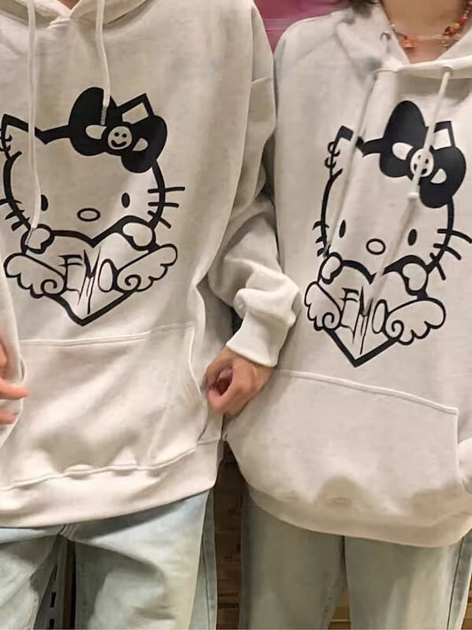 White Couple Kitty Hoodie