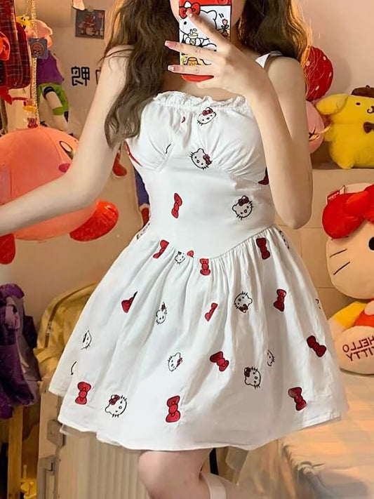 Kitty Embroidery Suspender Dress