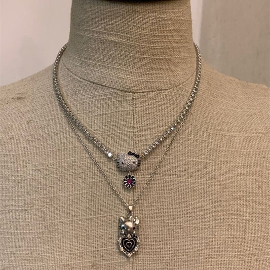 Sweet Full Diamond Kitty Flower Necklace KI681