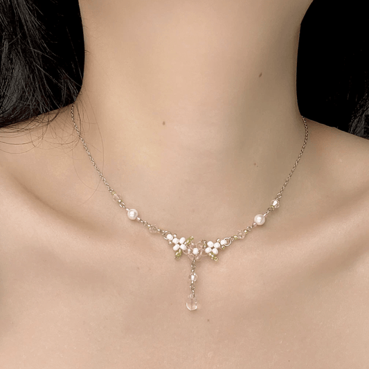 Crystal Floral Seed Beaded Chain Choker Necklace