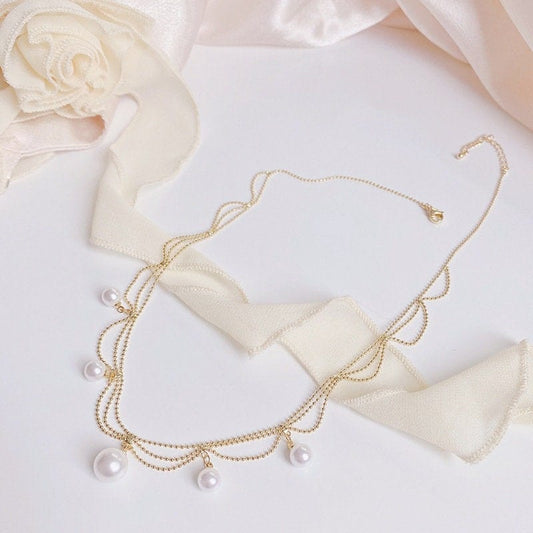 Trendy Layered Pearl Tassel Ball Chain Choker Necklace