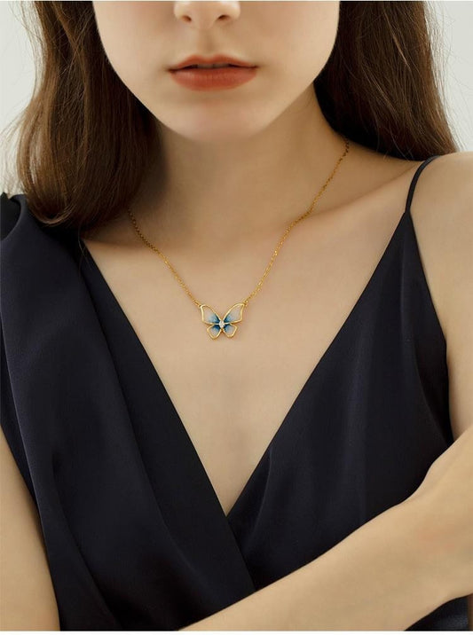 Chic Colorful Enamel Butterfly Necklace