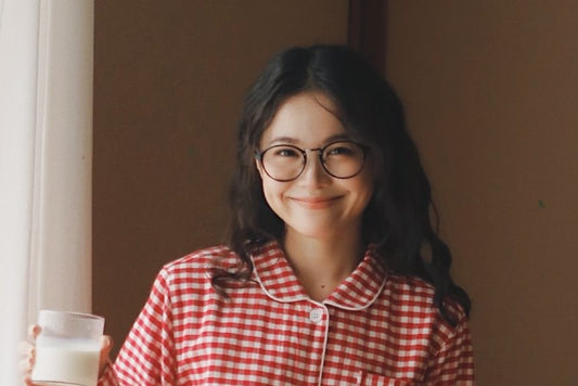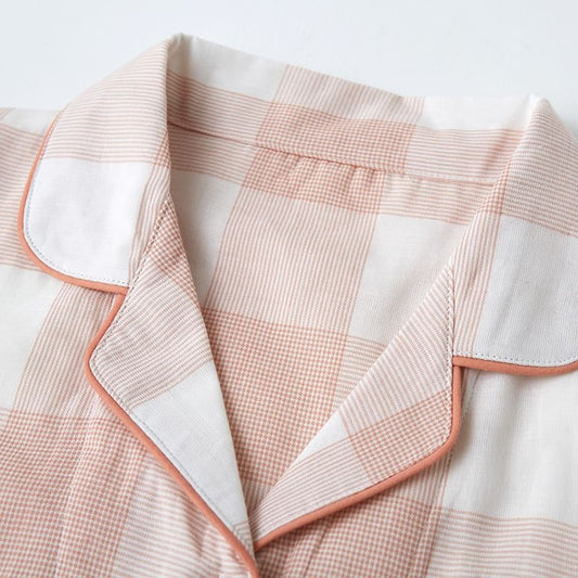 Couple Matching Pajama Set: Long-Sleeve Lapel Collar Gingham Button-Up Top + Pants