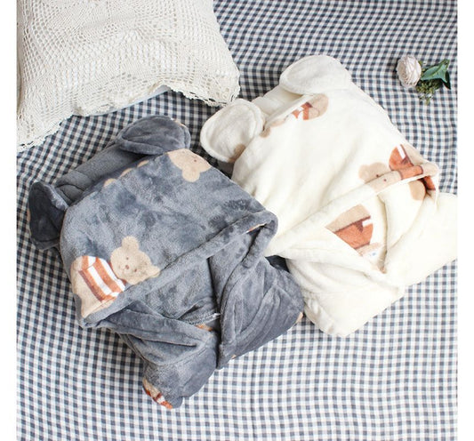 Couple Matching Long-Sleeve Bear Print Hooded Pajama Robe