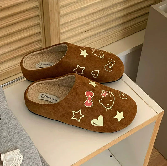 Clogs Slippers Suede Warm Hellokitty Fuzzy