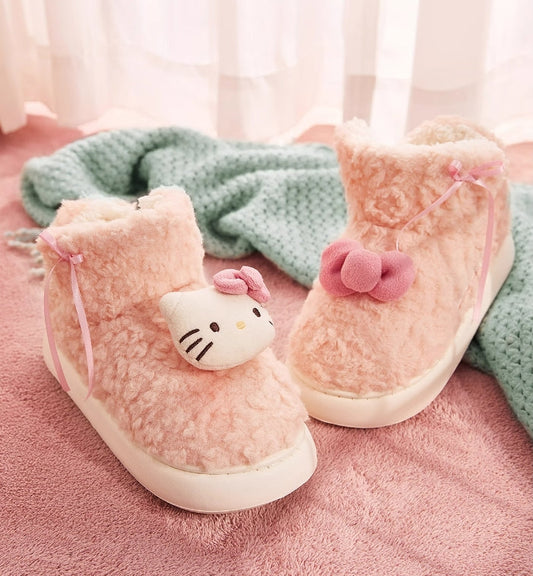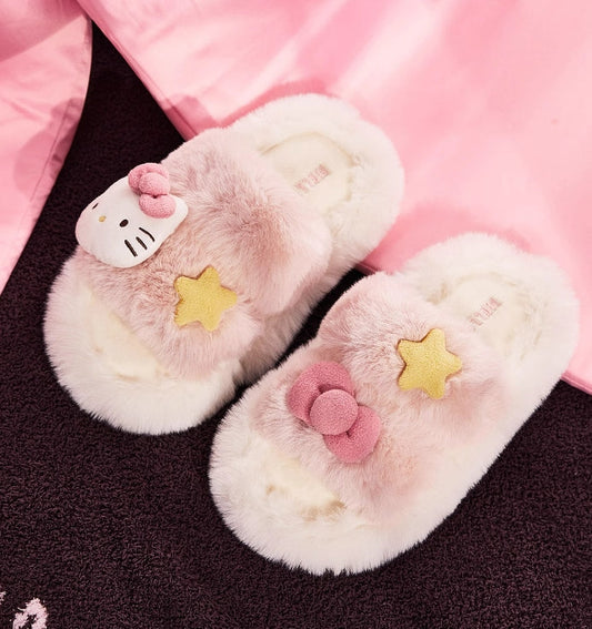 Brown Kitty Fuzzy Slippers Winter House Shoes