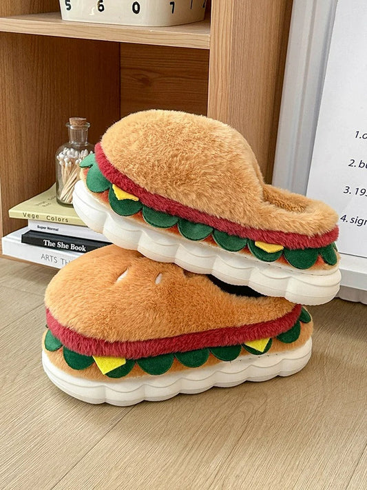 Kawaii Hamburger Fuzzy Slippers Home Slippers