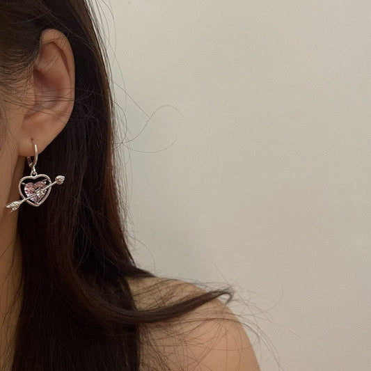 Charmante Pfeil-Herz-Ohrringe mit rosa Kristall