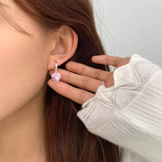 Schicke süße rosa Kristall baumeln Herz Ohrringe