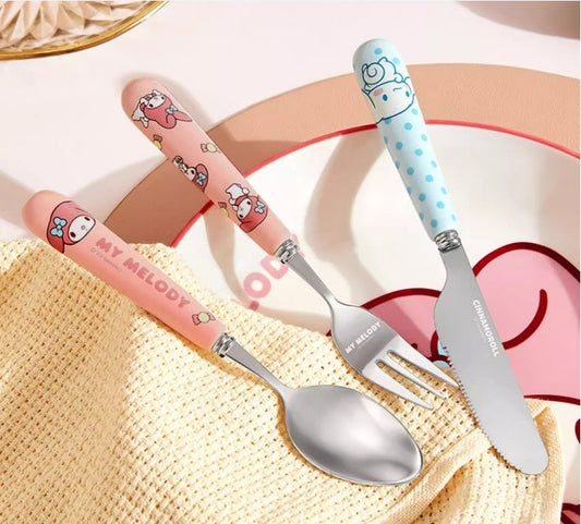 Besteckset aus Keramik und Edelstahl mit Cartoon-Motiv