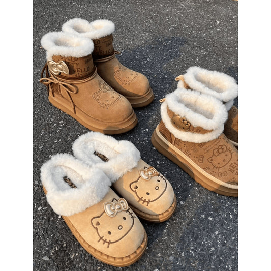 [Vorbestellung] Authentische braune Kitty Fuzzy-Schneestiefel KI661