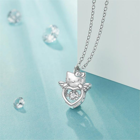 Kawaii Kristall schlagendes Herz Engel Kätzchen Halskette
