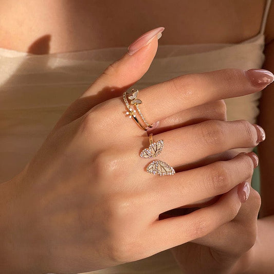 Elegant Butterfly Flower Open Ring Set