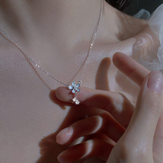 Elegante handgefertigte Blumenhalskette mit goldenen Kristallen