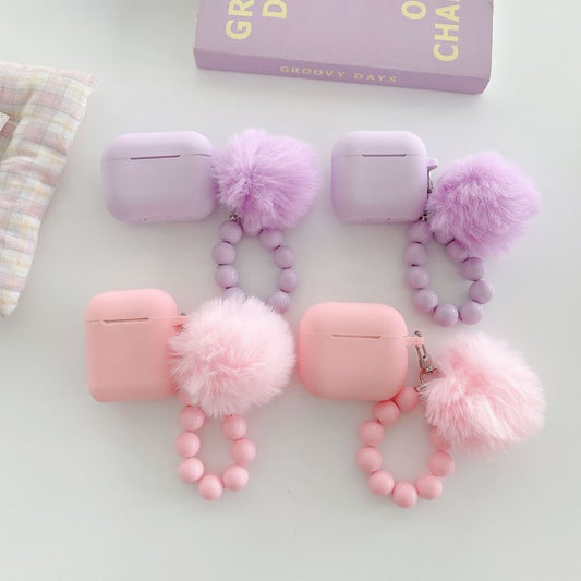 Plain Apple AirPods / Pro Earphone Case Skin with Pom Pom Strap