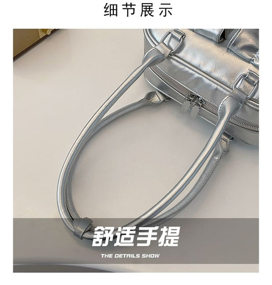 Plain Bow Accent Faux Leather Bowler Bag / Ribbon / Set