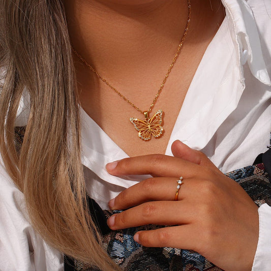 Collier chaîne papillon creux rempli d'or