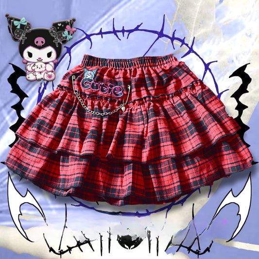Jupe à carreaux avec chaîne Kuro Y2K KI507