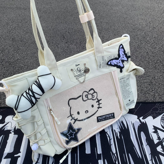 Sac messager blanc à motif papillon Y2K Kitty KI536