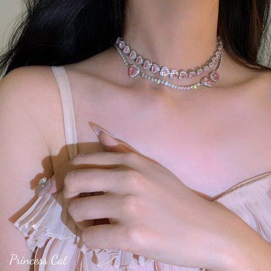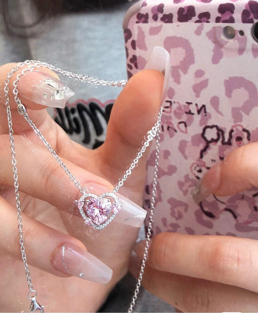 Collier avec pendentif en forme de cœur en cristal rose taille diamant