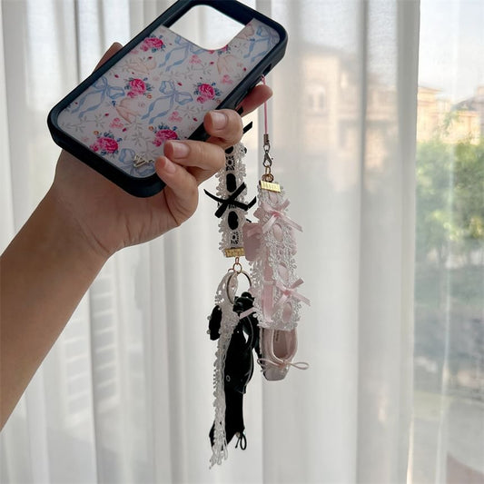 Bow Ballet Shoe Lace Bag Charm Keyring