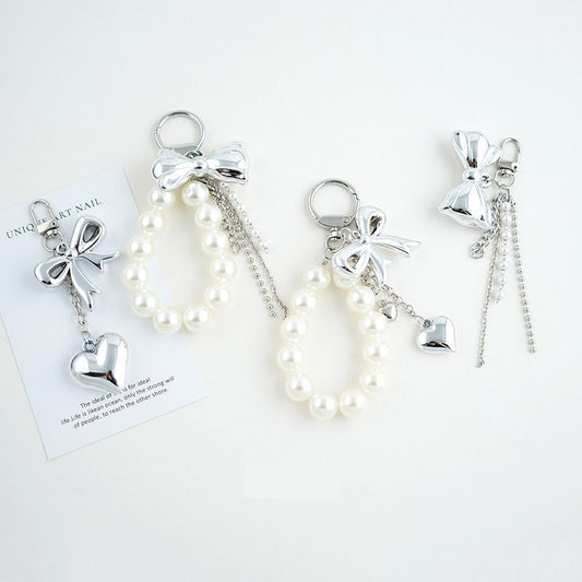 Bow / Heart / Faux Pearl Alloy Bag Charm Keyring (Various Designs)