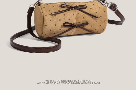 Top Handle Dotted Bow Faux Suede Crossbody Bag