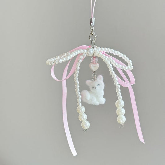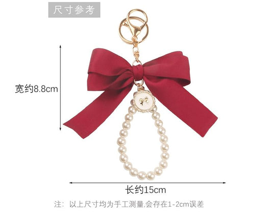 Bow Faux Pearl Ribbon Bag Charm (Various Designs)