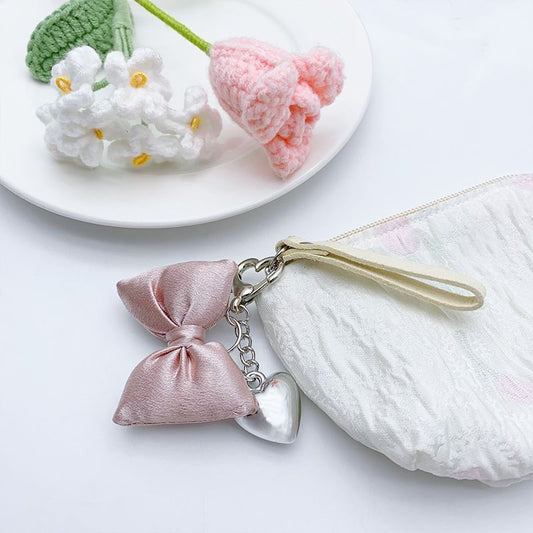 Plain Bow & Alloy Heart Bag Charm / Keychain