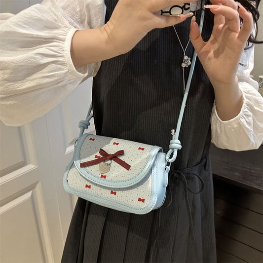 Patterned Print Bow Flap Crossbody Shoulder Bag