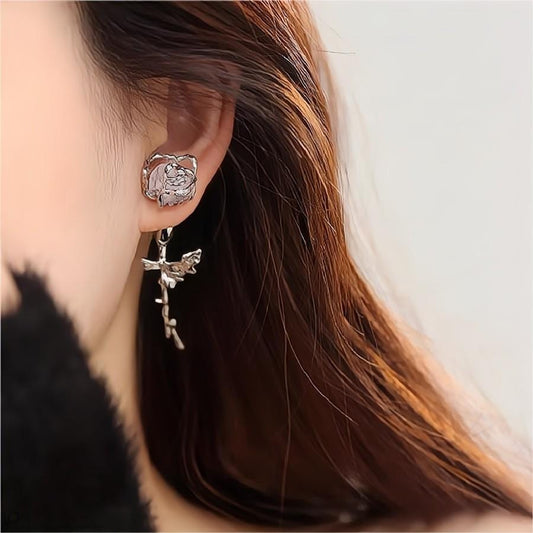 Boucles d'oreilles élégantes en forme de nœud papillon et de rose avec perles