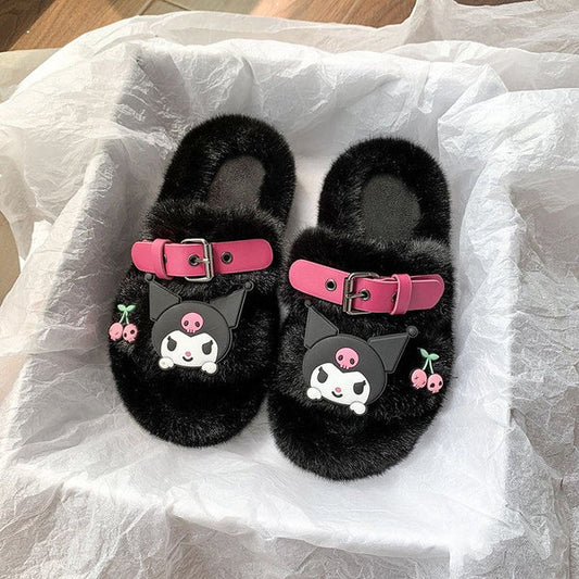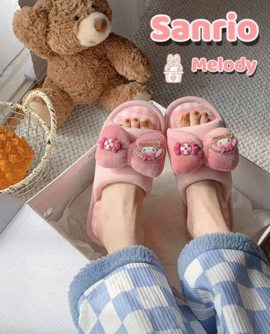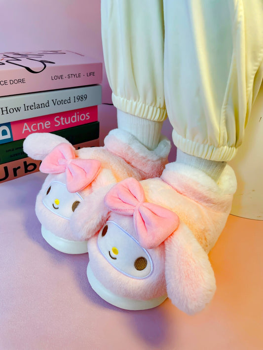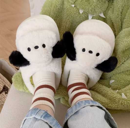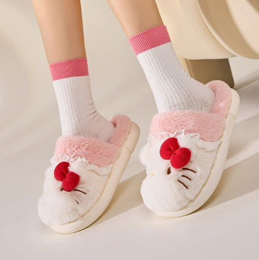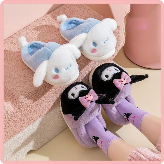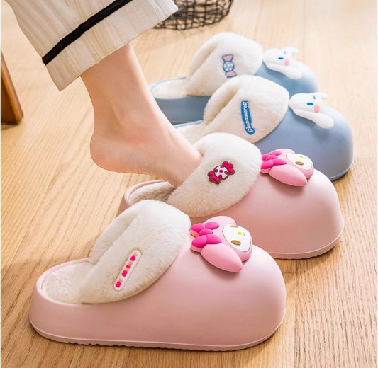 Chaussons imperméables à semelles épaisses en peluche de dessin animé