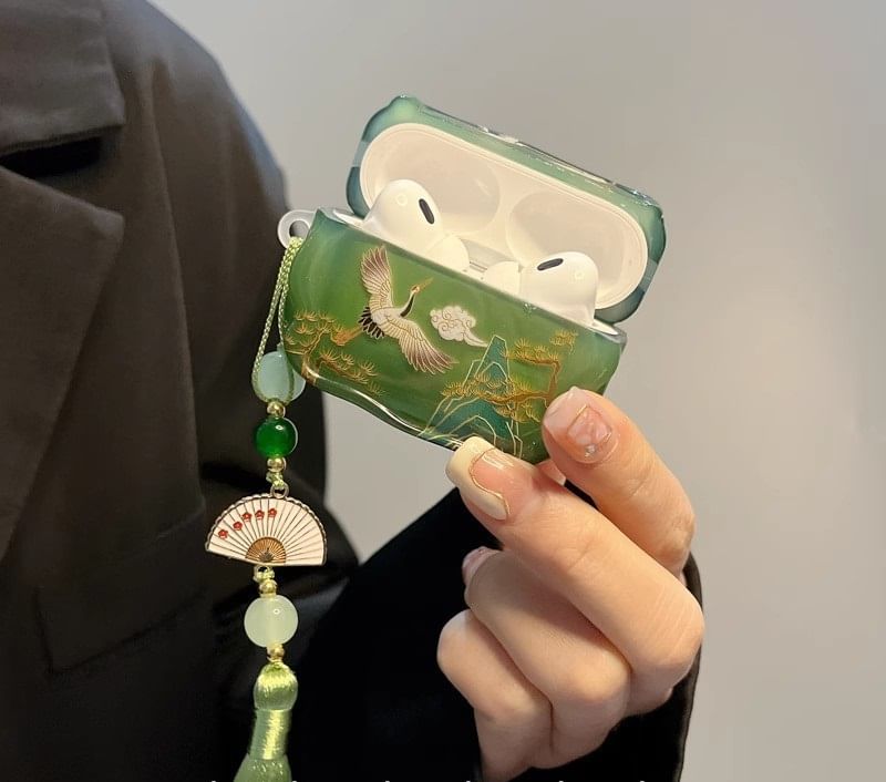 Crane Apple AirPods / Pro Earphone Case Skin / Tassel Charm / Set