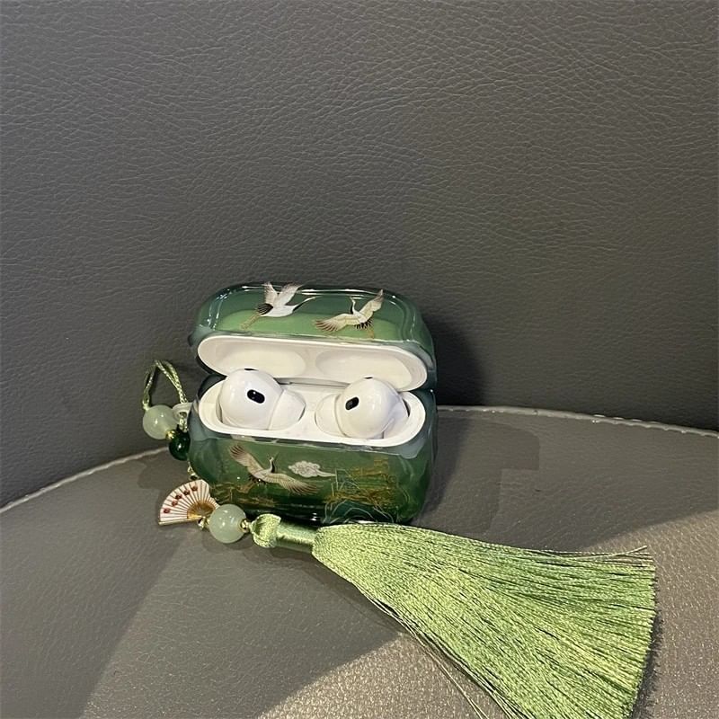 Crane Apple AirPods / Pro Earphone Case Skin / Tassel Charm / Set