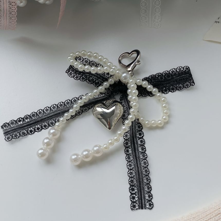 Beaded Bow Heart Bag Charm