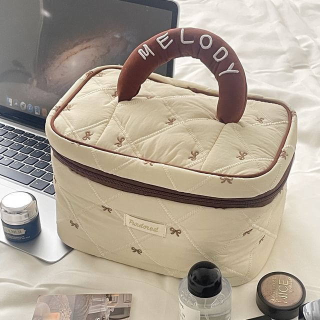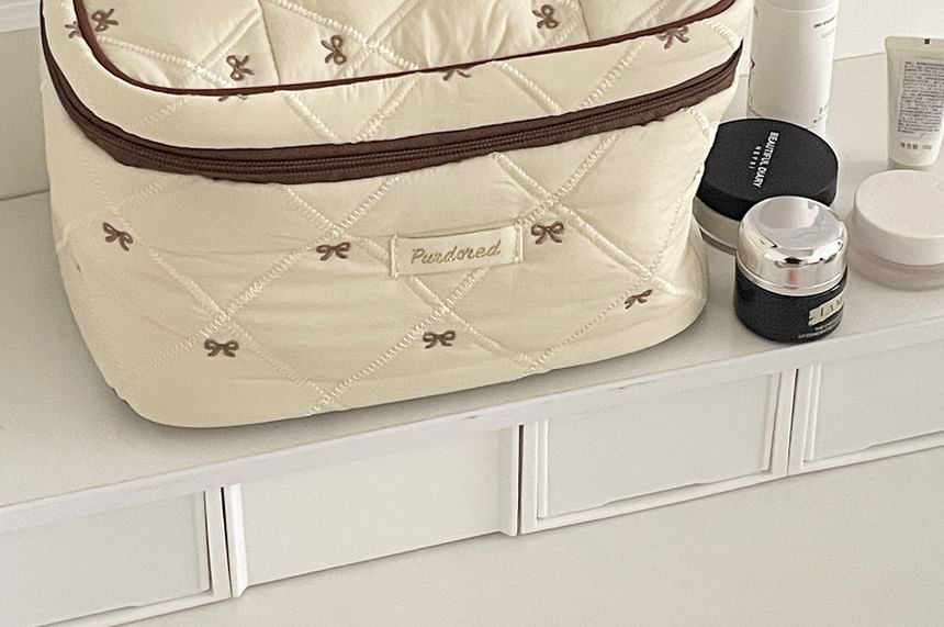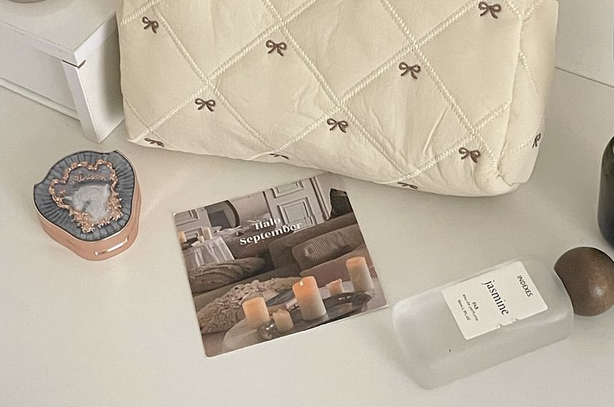 Bow Embroidered Fabric Makeup Bag (Various Designs)