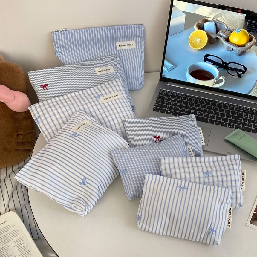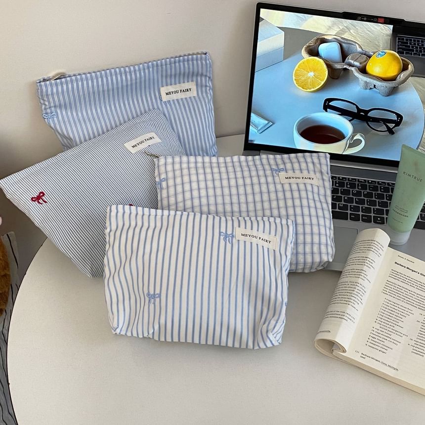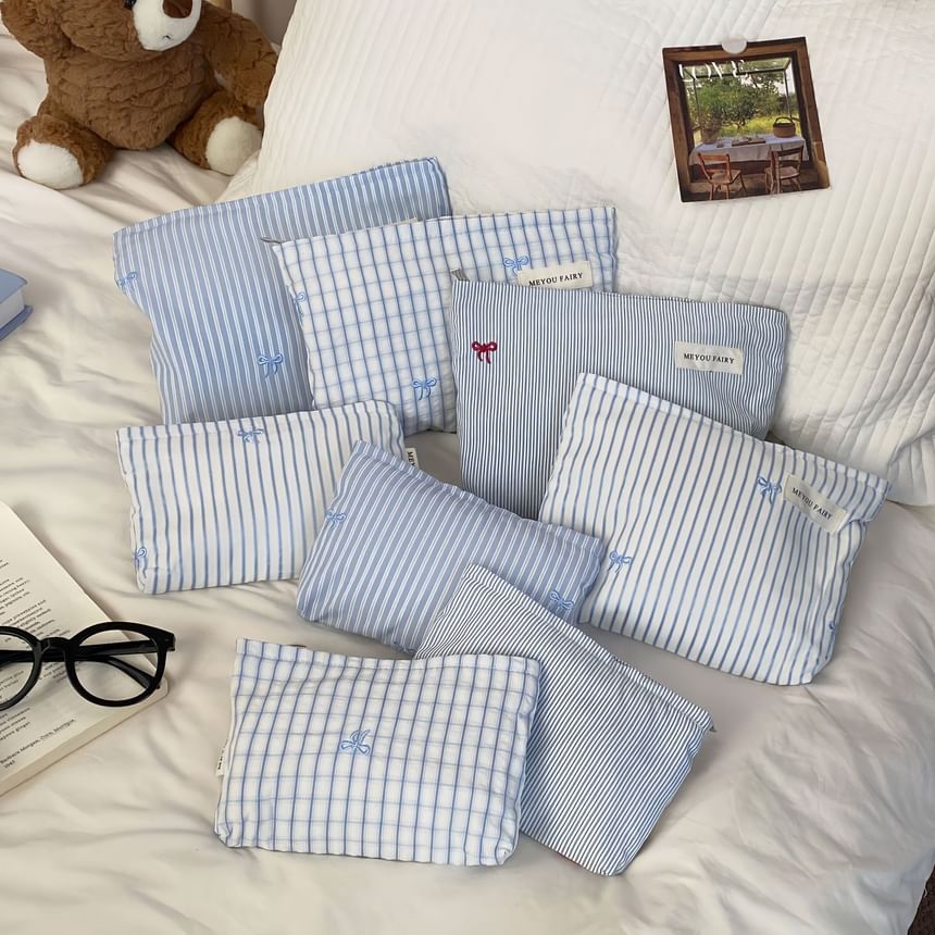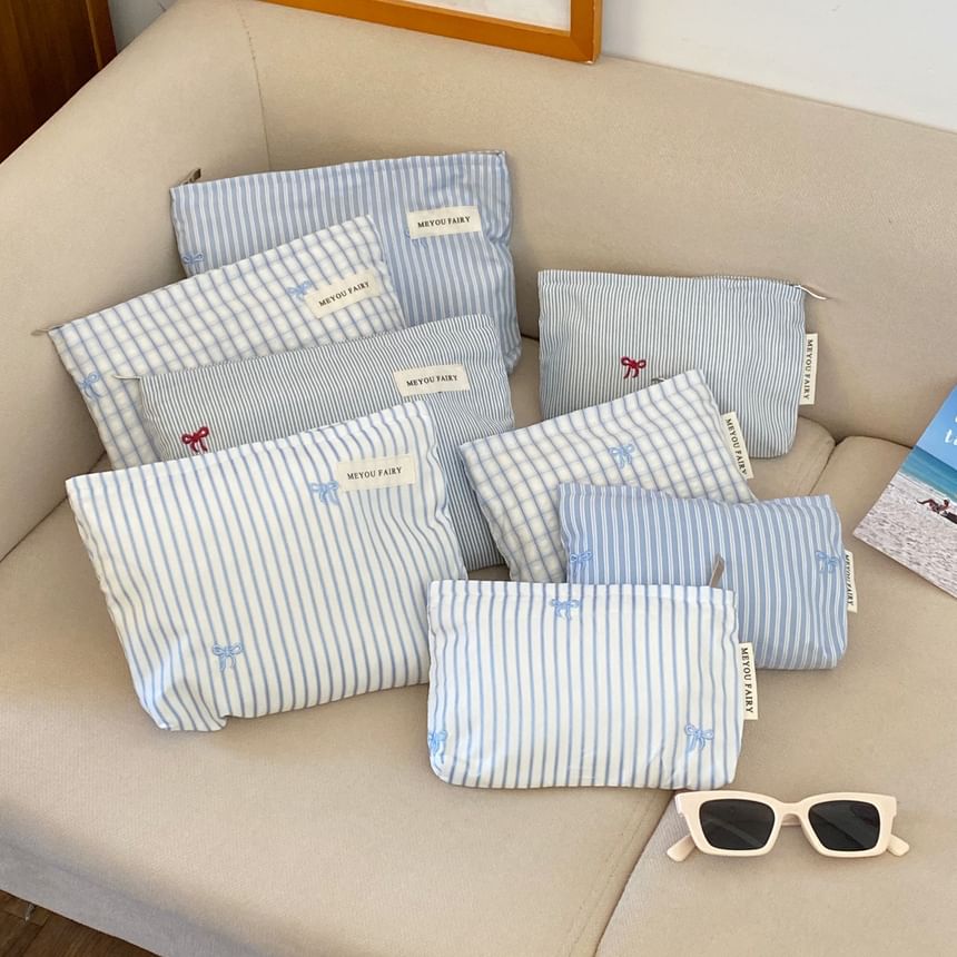 Bow / Striped / Plaid Fabric Travel Makeup Bag (Various Designs)
