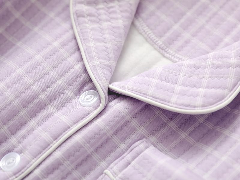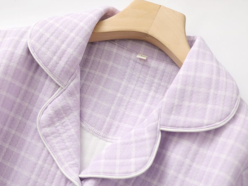 Couple Matching Pajama Set: Long Sleeve Collared Plaid Shirt + Elastic Waist Straight Leg Pants (Various Designs)
